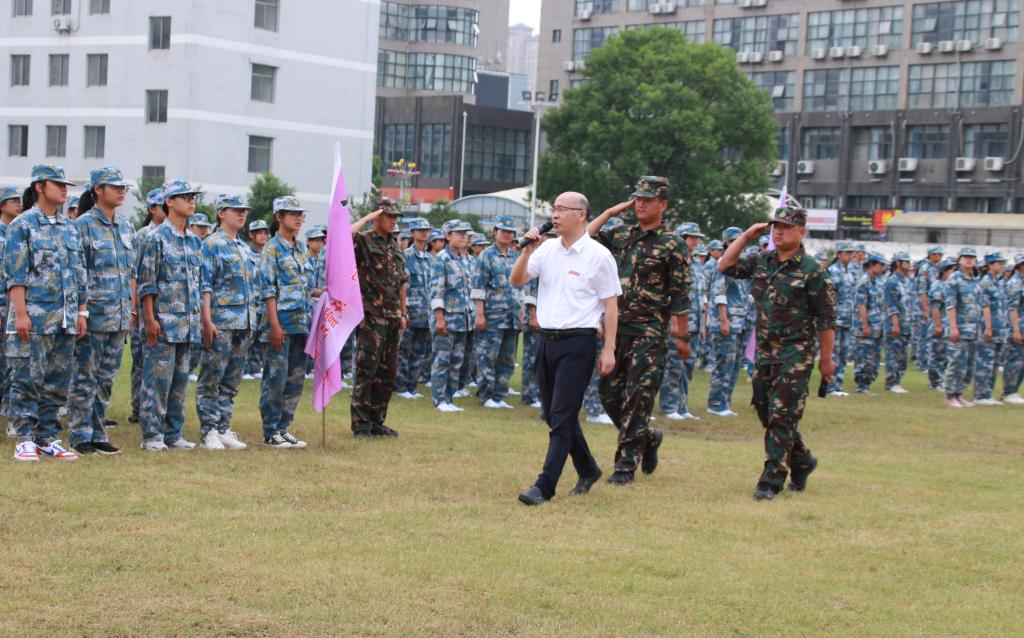 李明生书记在军训总教官的陪同下检阅军训方队。“同学们好!”“同学们辛苦了!”一句句亲切的问候温暖了师生的心。