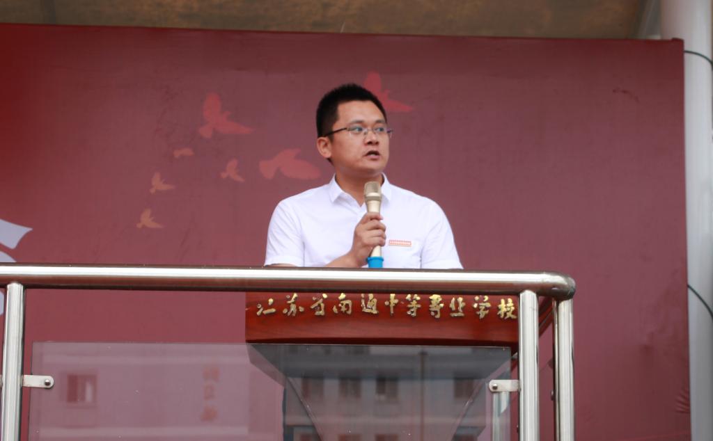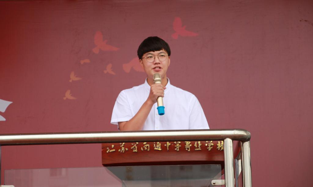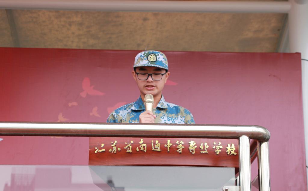 新生代表、2144班孙煜琪同学发言。他说,是南通中专让他感受到了温情与温暖,看到了未来和希望,懂得了责任与担当。他们将用飞扬的青春绘就人生的美好未来、学校的美好未来、祖国的美好未来。