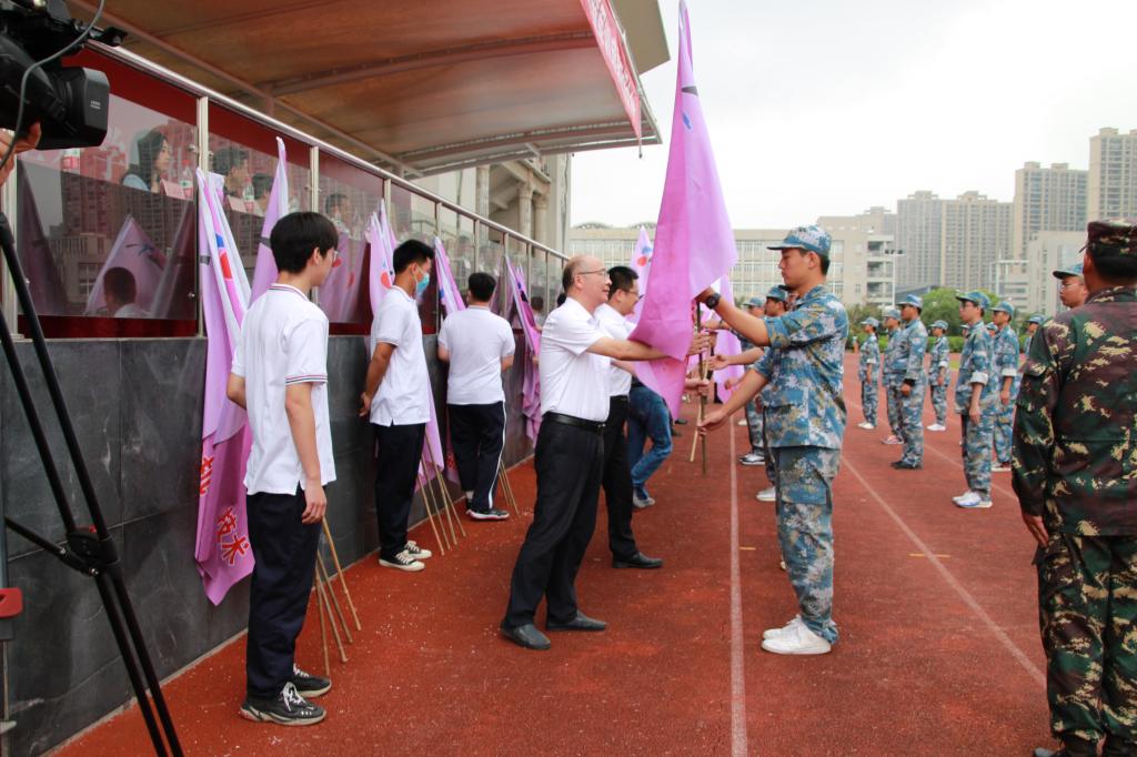 校领导向新生班级授旗
