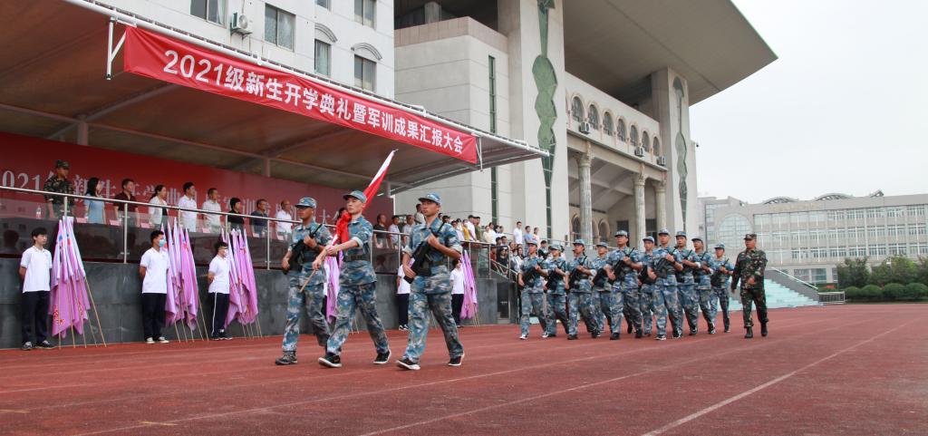 金色九月,阳光正好,秋风送爽,硕果飘香。9月7日上午,我校在田径场隆重举行2021级新生开学典礼暨军训成果汇报大会。校领导班子成员、各职能办处负责人、家长代表、教官代表等在主席台就座,全体2021级师生参加了现场活动,网络直播同步进行。校党委书记李明生检阅了军训方队,校长万军发表了热情洋溢的讲话,副校长陈建明主持活动。