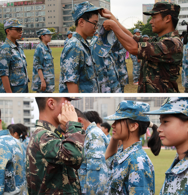 在退训仪式中,同学们用军人最标准的军礼给教官敬礼,教官为学员脱帽,大家热泪盈眶。