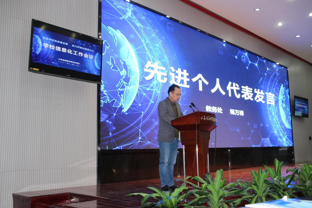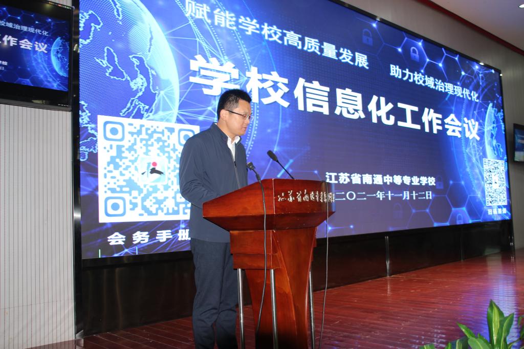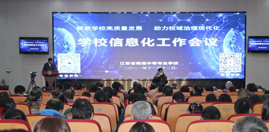11月12日下午,学校在报告厅召开信息化工作会议,会议主题为:赋能学校高质量发展,助力校域治理现代化。南通市教育技术中心主任秦卫东、南通大学现代教育技术中心原主任管图华应邀出席会议,校领导班子成员和全体教职员工参加会议。会议由校长万军主持。