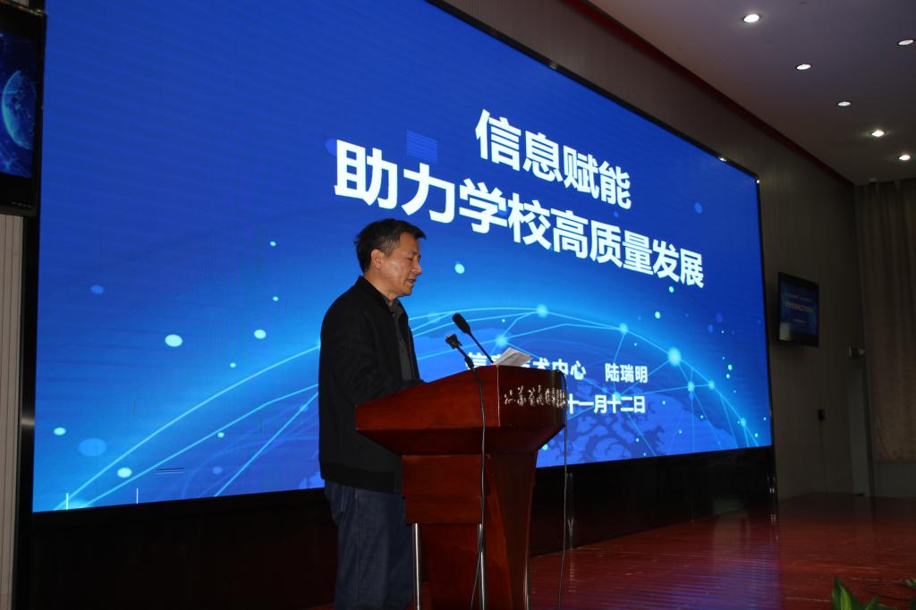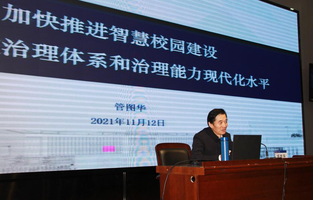 会议第二阶段,南通大学现代教育技术中心原主任管图华为与会人员作了《加快推进智慧校园建设,提升学校治理体系和治理能力现代化水平》的主旨报告。