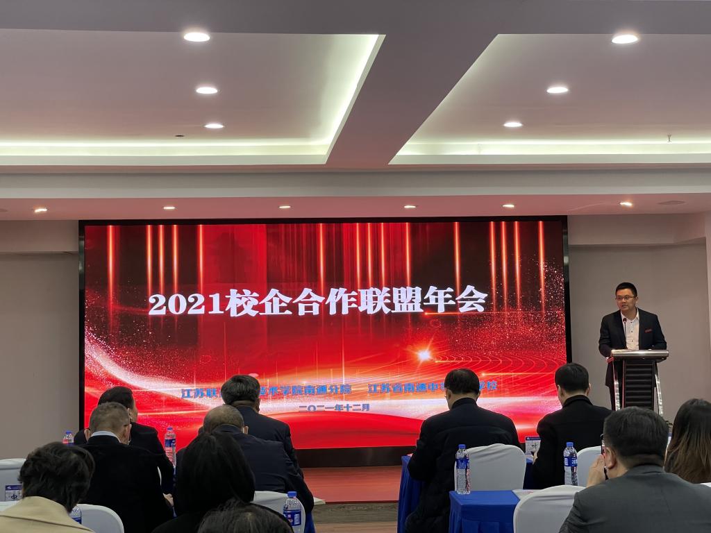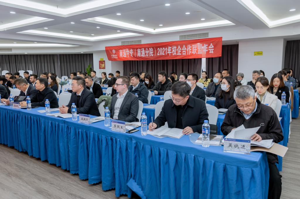 12月13日下午,我校召开2021校企合作联盟年会。南通市教育局副局长姜学勤、南通市人社局就管中心主任唐晓春、苏锡通科技产业园政法与社会事业局局长叶天竹等领导以及中天科技集团、施特万(南通)自动化机械制造有限公司、旺腾机电(南通)有限公司等40家合作企业高管应邀出席会议。校部分领导班子成员、有关部门负责人参加会议。年会由校长万军主持。