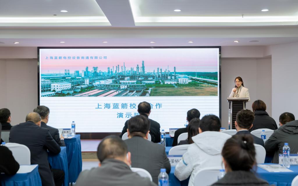 与会人员观看了我校现代学徒制工作宣传片《创新现代学徒制模式,赋能高技能人才培养》。上海蓝箭电控设备成套有限公司总经理高小玲、旺腾机电(南通)有限公司副总经理王振强代表合作企业分别介绍了与我校开展现代学徒制和企业新型学徒制合作的经验与成效。