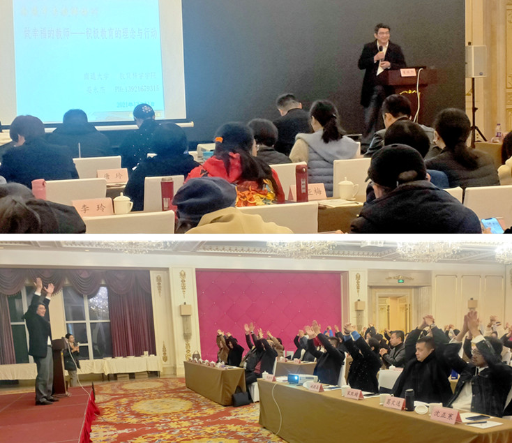 11日上午,南通大学教育科学学院心理学教授姜永杰为班主任们作了题为《做幸福的教师——积极教育的理念与行动》的精彩讲座。姜教授从积极心理学的概念、积极心理学的作用、积极教育的理念与行动三个方面,通过大量的个案、故事、趣味测试和互动游戏,和班主任们分享了他多年的研究成果。陈建明副校长在主持讲座时指出,姜教授的讲座隐寓着很多的道理和方法,希望班主任们好好感悟,用更加积极的心态面对工作,面对学生,让教育工作变得更美好、更幸福,做个幸福的教师。