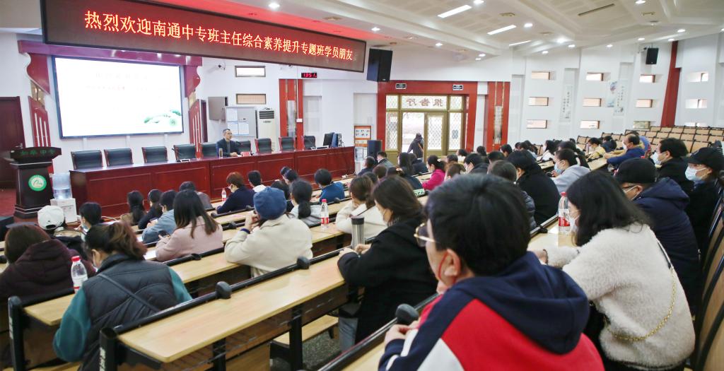 11日下午,培训班一行来到如皋中专参观学习。如皋中专陆克平副校长满怀教育激情,为班主任们作了题为《找回最初的你——中华经典文化智慧与学生管理工作的思考》的精彩讲座,全体班主任深受鼓舞。