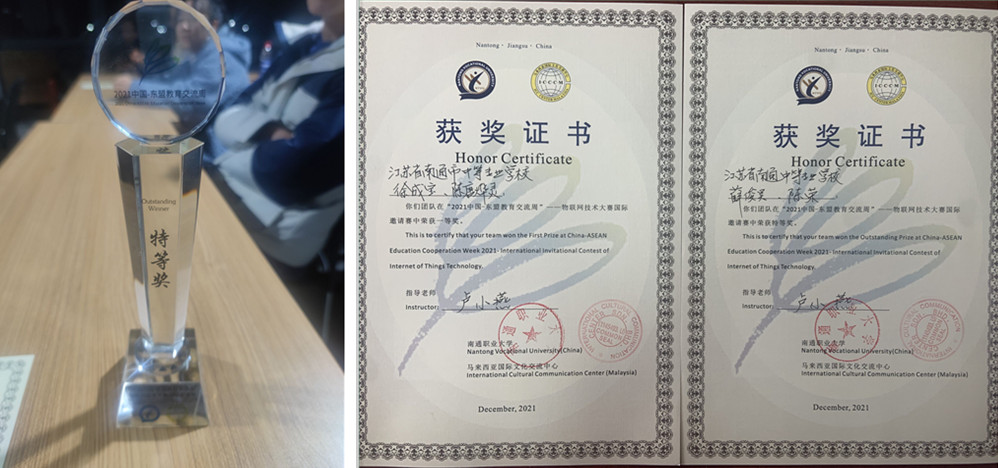 12月12日下午,由中国-东盟教育交流周组委会指导,南通职业大学和马来西亚国际文化交流中心联合主办的“2021年中国-东盟教育交流周”——物联网技术大赛国际邀请赛在南通职业大学数字技术公共实训基地线上线下同时举行,来自7个国家101个代表队的202名选手参加了的角逐。我校信息工程系组建的陈荣、薛俊昊代表队和徐成宝、陈唐烨灵代表队喜获团体特等奖和一等奖。