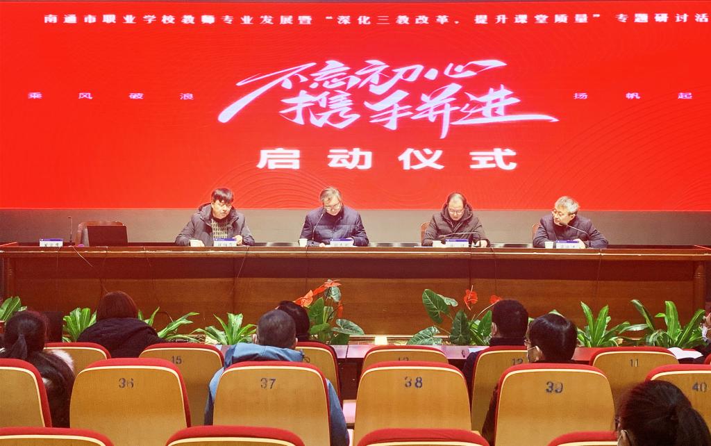 1月14日,南通市职业学校教师专业发展暨“深化三教改革,提升课堂质量”专题研讨活动在我校报告厅举行。南通市教育科学研究院顾志刚副院长、市职业教育理论研究与教师发展中心组全体成员、各职业学校教师发展部门负责人、专业阅读活动具体负责人、全市省市职业教育名师工作室代表及部分征文获奖者代表参加了本次活动。