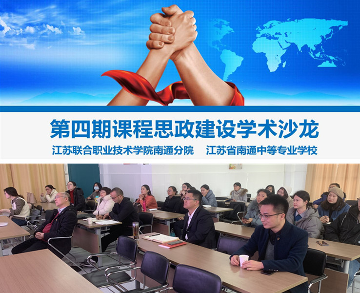 1月13日下午,学校课程思政教学研究中心在服装实训楼204室举办了第四期学术沙龙,校党委书记李明生、校长万军出席。本次沙龙特邀南通市教科院王爱华主任作专家点评。学校课程思政教学研究中心主任委员会、专项工作委员会成员和骨干教师参加。活动由科研处处长、学校课程思政教学研究中心办公室主任施捷主持。此次上台作汇报交流的两位青年教师是思政教研组的吴君垚老师与机电技术系的姜子重老师。