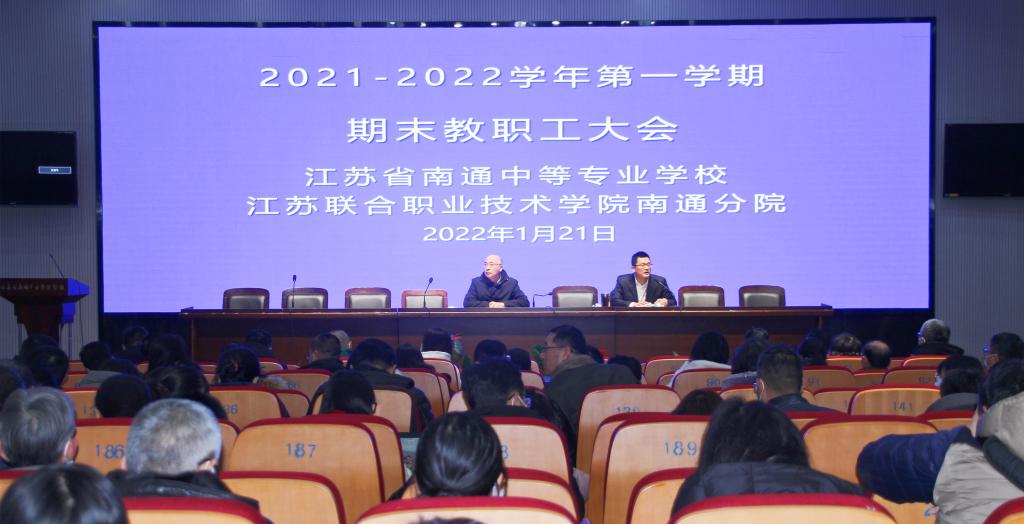 李明生书记在讲话中总结了我校2021年的主要工作和取得的成绩。他说,2021年,我校以习近平新时代中国特色社会主义思想为指导,全面加强党对学校工作的领导,深入开展党史学习教育和“两在两同”建新功行动,落实意识形态和党风廉政建设责任制,强化支部战斗力建设和师德师风建设,落实立德树人根本任务,把牢社会主义办学方向,强化思想政治教育,科学谋划 “十四五”发展规划,深化“成功教育”实践和研究,优化师资队伍,改革教育教学,深化产教融合,推进校园文化建设和文明校园建设,学校各项事业取得长足发展。这一年,我校获得江苏省职业教育教学成果特等奖和一二等奖、全国职业院校技能大赛银牌、省职业院校教师教学能力大赛一等奖、 国家级教师教学创新团队、全省教科研工作先进集体、全省关心下一代工作优秀集体、江苏省五四红旗团委、南通市文明校园、全省中小学校统战与群团“同心育人”计划优秀项目等数十项荣誉和奖项。他号召全校师生员工以推进现代化五年制高职校建设为主线,坚持立德树人,优化“成功教育”,推进“三教”改革,深化产教融合,埋头苦干,勇毅前行,奋力书写学校高质量发展2022崭新篇章。