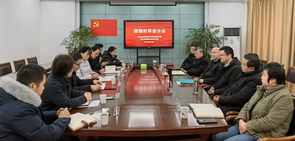 2月12日上午,我校在第一会议室召开援疆教师座谈会。校领导班子全体成员以及工会、组织人事处、机械工程系、艺术设计系负责人与吉萍、王玉春两位援疆老师亲切座谈,表达对他们的关心支持,鼓励他们更好投入援疆事业。组织人事处处长许璨主持会议。