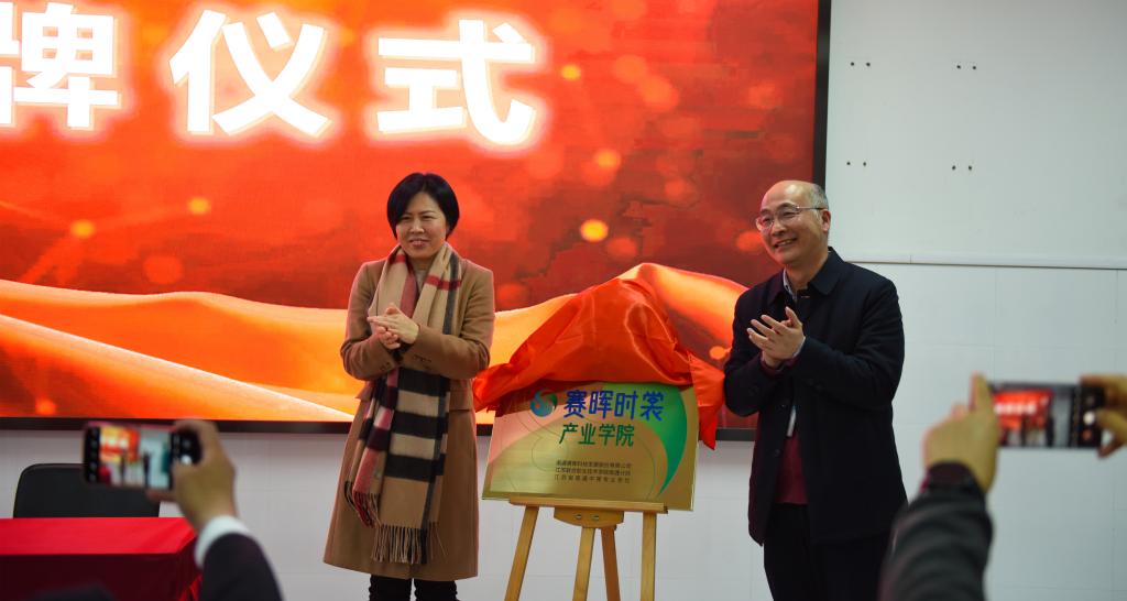 施捷处长向大家介绍了产业学院的有关情况。李明生书记与姚桂兰董事长为产业学院揭牌。万军校长与姚桂兰董事长在产业学院合作协议上签字。孙海如副校长为姚桂兰董事长、沈海生总经理颁发产业教授聘书。艺术设计系宋玖珣主任、赛晖企业沈海生总经理、财经商贸系教师代表夏爽、艺术设计系学生代表吴宇芹分别在仪式上发言。
