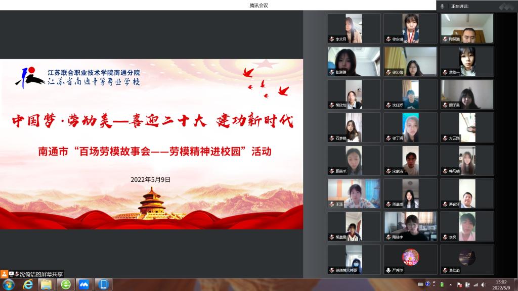 此次活动是南通市委宣传部、市教育局、市总工会组织开展的南通市“百场劳模故事会——劳模精神进校园”宣讲活动之一,也是我校2022年职业教育活动周的重要活动之一。