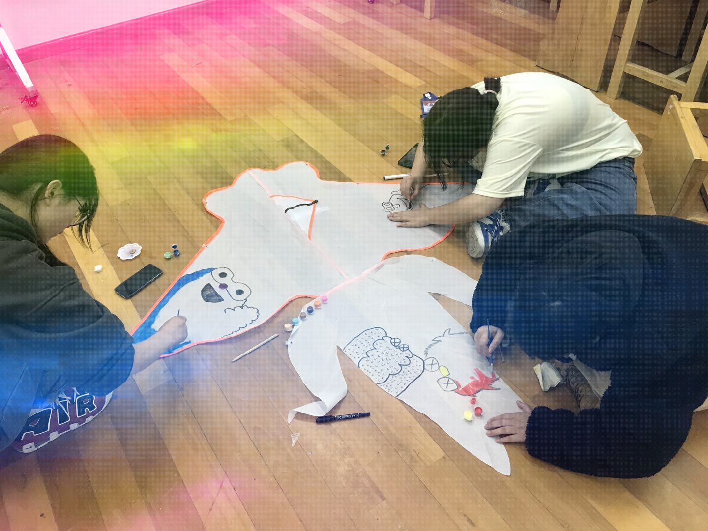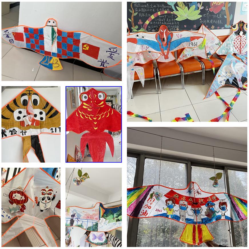前期,各班的风筝绘制团队,在空白风筝上尽情挥洒,展示了独特的绘画才能和创意点子,爱国情怀、抗疫英雄、民俗文化、卡通形象等多样化的内容活灵活现的展示在风筝上,每个班还在幸福签上留下美好的祝福语,等待与风筝一起翱翔蓝天。