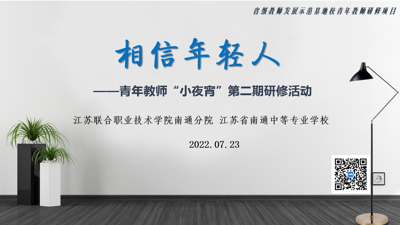 7月23日晚上,江苏联院南通分院在线举行了“相信年轻人——青年教师‘小夜宵’第二期研修活动”,近70位青年教师参加。艺术设计系储姝老师主持活动。