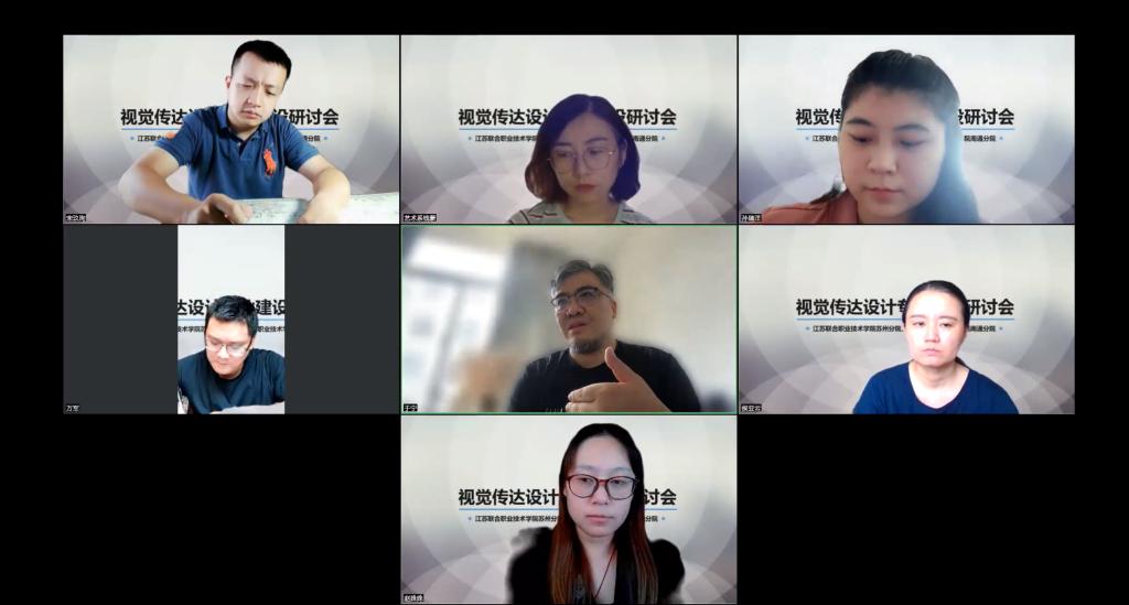 8月13日上午,我校艺术设计系在线召开视觉传达设计专业建设研讨会。江苏联合职业技术学院苏州分院艺术设计系主任庄璐、主任助理于宁,视觉传达设计教研室主任钱蒙受邀参与研讨。我校校长万军、艺术设计系主任宋玖珣及相关专业老师参加。会议由宋玖珣主持。