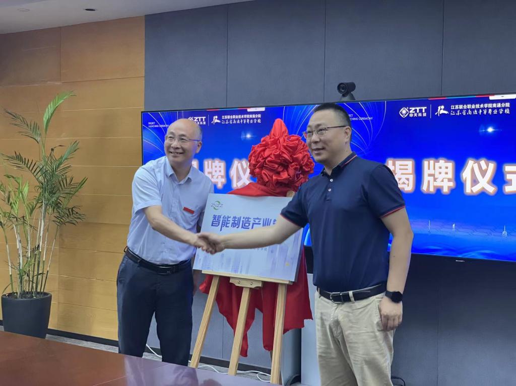 9月9日上午,江苏联合职业技术学院南通分院与中天科技集团在中天科技南通科创中心举行校企合作恳谈会暨智能制造产业学院成立仪式。中天科技集团总裁薛驰,人力资源部总经理钱蒋锋、人事经理薛峰、蔡彩红,南通分院党委书记李明生、校长万军、副校长孙海如、招生就业与社会培训处处长张兵、机械工程系主任严海军、教务处副处长姚海燕等出席。仪式由南通分院机电技术系主任夏嬗主持。