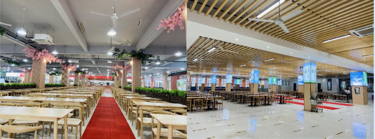 学期初,一、二楼食堂对就餐环境分别进行了升级改造。升级后的一楼食堂,宽敞明亮、十里“花香”,让吃饭成为一种惬意;二楼食堂,皮椅卡座、窗明几净,给就餐增添几许浪漫。