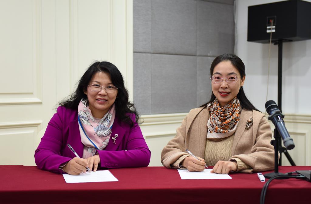 许新海和万军为“名特优美”教师发展工程导师团专家颁发聘书。导师和学员代表濮海慧、吴裕美签订结对协议。