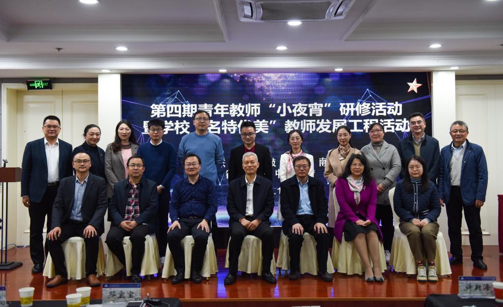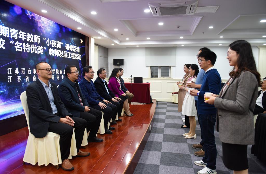 11月18日晚,我校借座金陵华侨酒店举行“名特优美”教师发展工程启动仪式暨第四期青年教师“小夜宵”研修活动。南通市教育局副局长许新海博士应邀出席活动并作学术报告。导师团专家——南通大学职业教育与区域发展研究所邓宏宝所长、濮海慧博士、张宇博士,通州中专校长姜汉荣教授,南通市教育科学研究院职教科刘兵兵科长、王爱华教研员出席;中国企业管理无锡培训中心党委书记梅亚萍研究员线上出席活动。我校万军校长、吴晓进副校长、陈建明副校长出席活动;全校首批“名特优美”教师发展工程培养对象及青年教师共70余人线下或线上参加活动。活动由学校科研处处长、教师发展中心主任施捷主持。