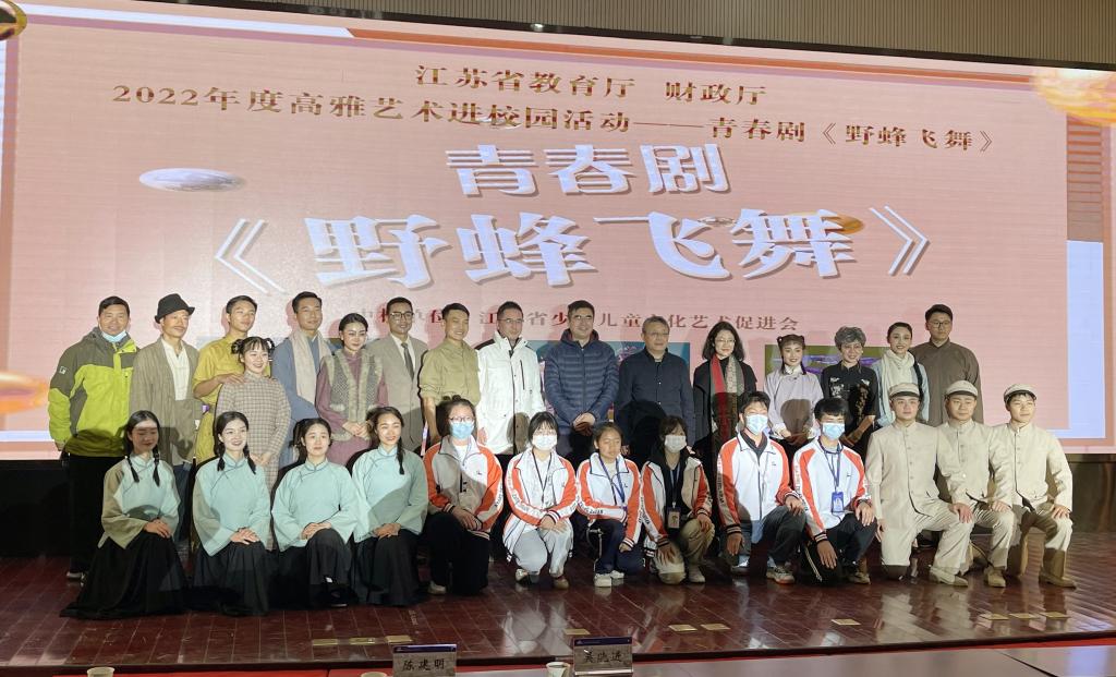12月5日,由江苏省教育厅、财政厅主办,江苏省少年儿童文化艺术促进会承办的高雅艺术进校园项目——青春剧《野蜂飞舞》走进我校,在我校报告厅上演。万军校长,吴晓进、陈建明副校长等校领导和全校师生观看了演出,项目评估专家南通科技职业学院宣传部赵艳副部长来到现场开展评估。