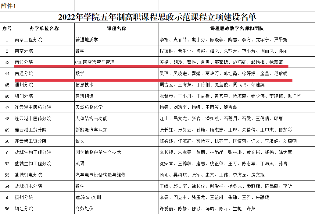 近日,江苏联合职业技术学院公布课程思政示范项目立项建设名单,我校C2C网店运营与管理和数学2门课程和“润成”课程思政教学研究中心分别入选2022年学院五年制高职课程思政示范课程和示范研究中心立项建设名单。