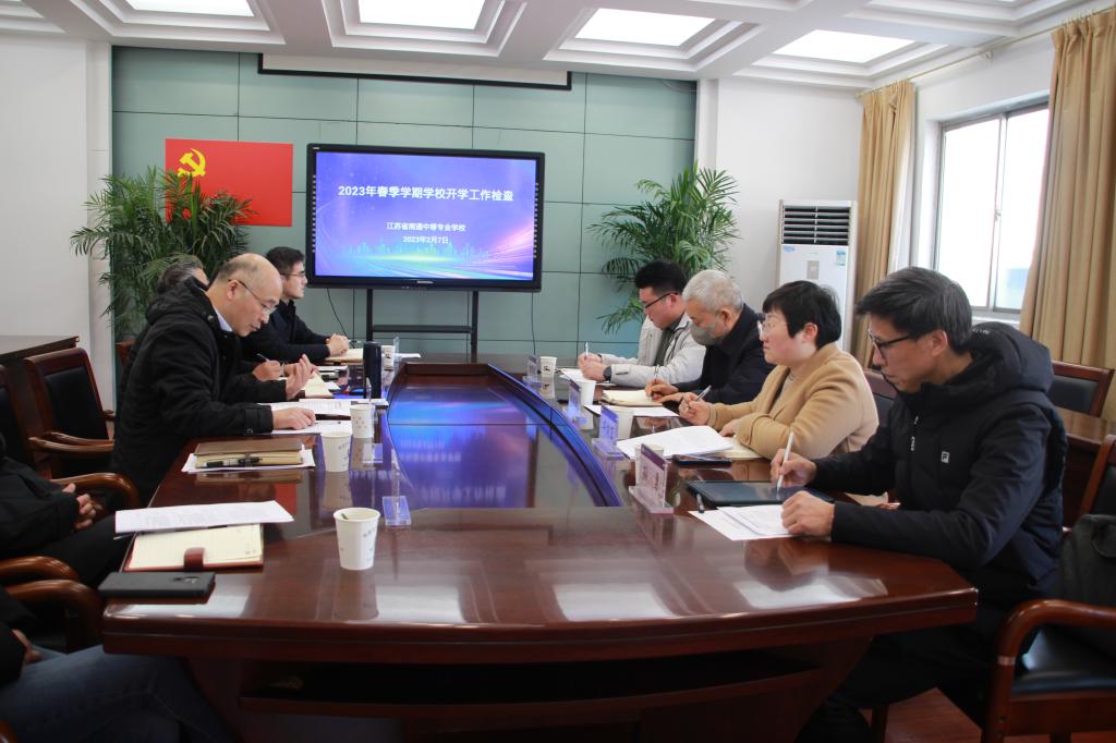 2月7日下午,南通市教育局副局长许新海、职业教育与高等教育处处长李维、人事处副处长邓荷蓉、职业教育与高等教育处干部陆深波、南通市旅游中专副校长孙勇等一行来我校检查2023年春季学期开学工作。