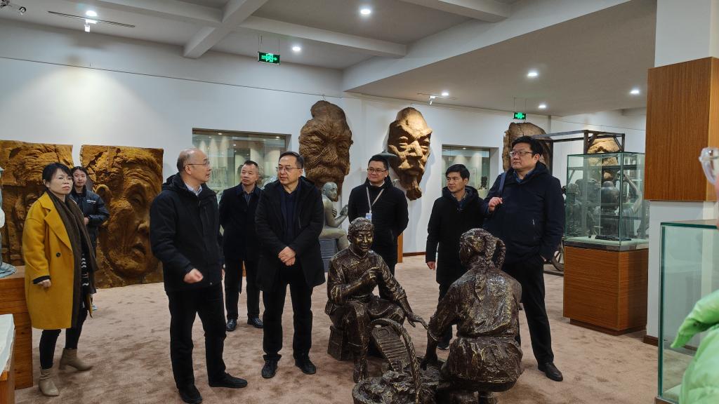 茆艾磊一行饶有兴致地参观了雕塑艺术馆,对于我校能有如此规模和特色的雕塑艺术馆,并能充分发挥艺术馆的美育功能,给予了高度评价。