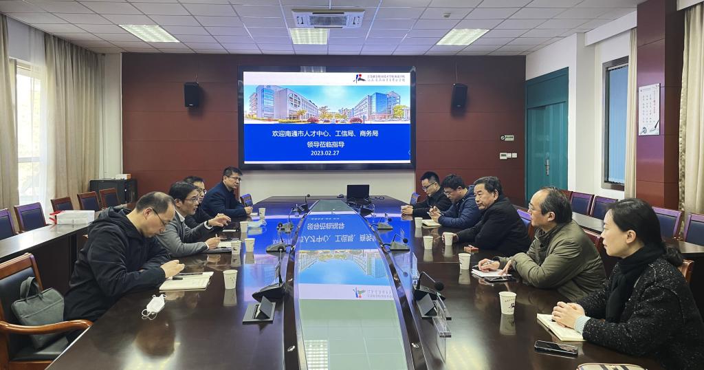 2月27日下午,南通市人才服务中心主任施晓球、毕业生就业科科长秦海涛,南通市工信局软件与信息服务业处处长柯达,南通市服务贸易企业协会董伟干一行四人来我校调研就业工作,副校长孙海如,招生就业与社会培训处、信息工程系、财经商贸系主要负责人参加调研。