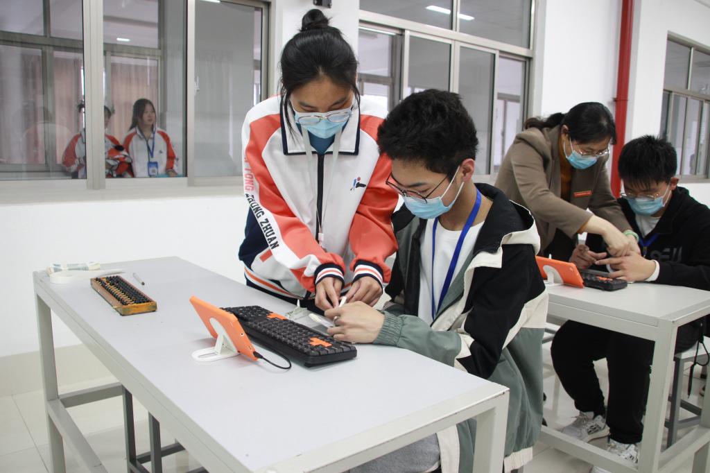 我校为前来体验的初中学生开设了机器人控制、机械手制作、3D打印、汽车维护保养、小视频制作、照片处理、直播带货、珠算、点钞、印染、小提琴演奏等生动丰富、技能含量高、职业前景广的体验项目,同学们仔细观看、认真听讲、动手体验,点头、微笑、惊奇、赞叹,兴趣盎然、目不暇接、不亦乐乎。