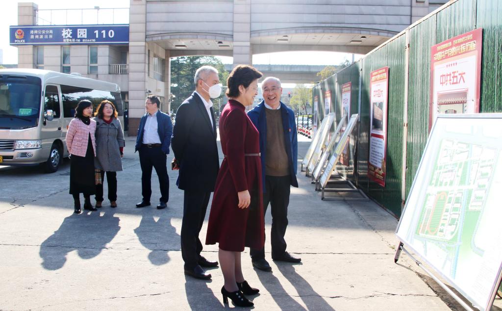 在校园总平图前,李明生向陈冬梅副市长一行简要汇报了学校办学历史、办学性质、人才培养、发展规划等方面的情况。陈冬梅副市长一行参观了学校雕塑艺术馆,视察了校园、服装智慧实训中心、施捷名师工作室等处,与学校领导和部门负责人、相关老师亲切交谈,对我校在产教融合、职普融通以及教育科研、成功教育、人才培养、师资队伍建设等方面的做法和取得的成效予以肯定,要求学校牢牢把握职业教育高质量发展的新时代新机遇,实施好学校发展规划,进一步强化产教融合,优化职普融通,大力推进职教体系建设改革和人才培养供给侧改革,为南通地方经济社会发展提供更为优质、更加可靠的技术技能和人才保障。
