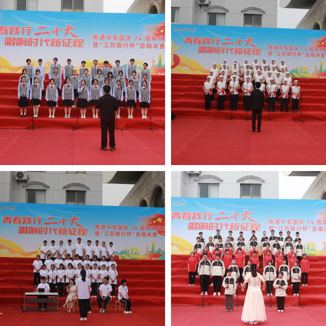 在表彰间隙,学校举行了“江苏银行杯”合唱决赛,入围决赛的十支合唱队伍用歌声致敬祖国,致敬学校,致敬先进,致敬青春。歌声高亢嘹亮,久久回荡在操场上空和师生心间,赢得全场阵阵喝彩。江苏银行静海支行姚莹副行长宣布比赛结果——财经商贸系1981班、机电技术系2251班、艺术设计系2275班荣获一等奖,其余班级分获二、三等奖。