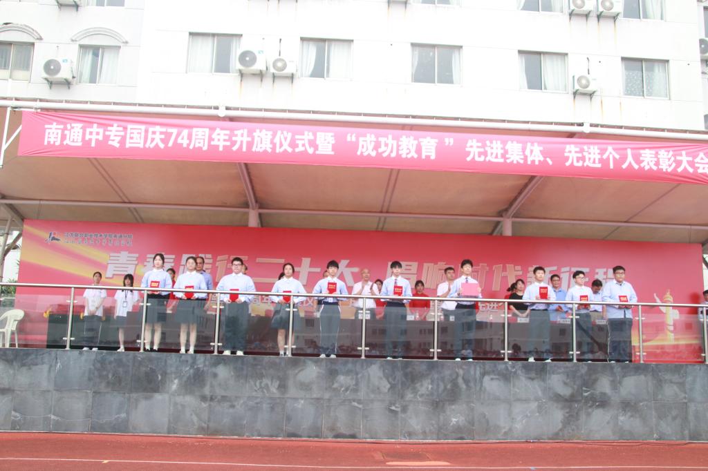 受到表彰的先进集体代表和先进个人分批上台领奖,校领导和嘉宾与他们一一握手表示祝贺,并为他们颁发奖状。新生代表2382班曹雨洁同学发言,表示将以师哥师姐们为榜样,在南通中专“成功教育”火热实践中迅速成长,续写辉煌。