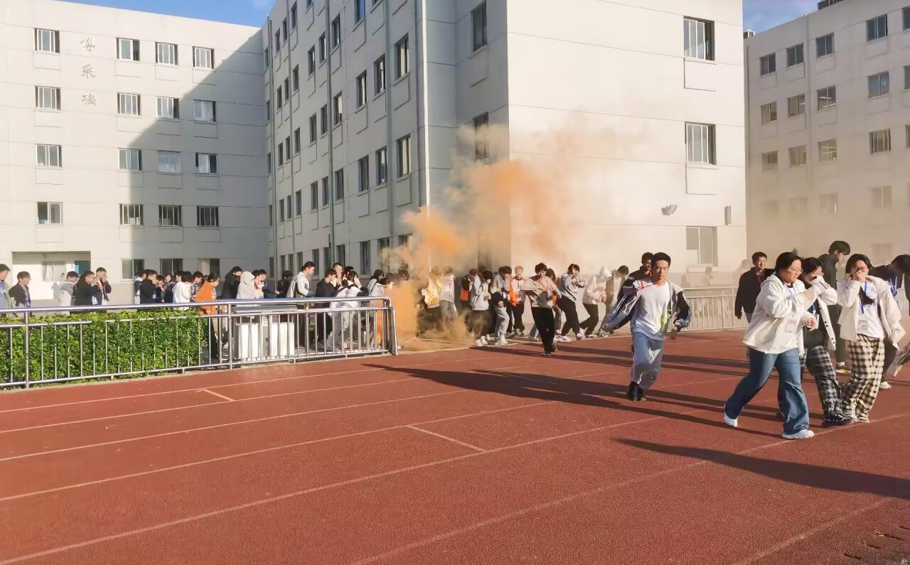 随着急促的警报声响起,演练正式开始,在各楼层负责老师的指挥下,同学们按照事先规划的疏散路线,迅速有序地撤离到操场的指定位置。整个过程规范有序,展现了师生良好的应急素养水平和团队协作精神。