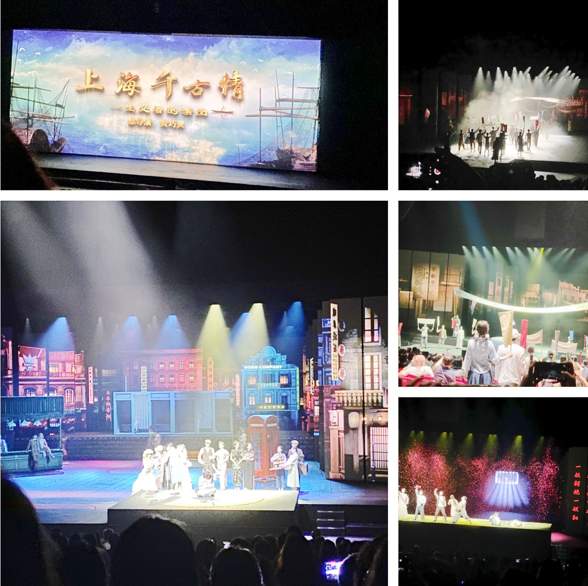 午后,师生们探访田子坊艺术街区,欣赏石库门建筑群中传统刺绣、陶瓷等工艺的现代表达,惊叹于“古老技艺焕发新生机”。傍晚在中华艺术宫,动态数字化《清明上河图》以光影技术生动再现汴京繁华,让学生们直观感受到科技赋能历史的震撼力量。夜幕降临,上海千古情剧场恢弘的史诗级舞台剧《上海千古情》,以黄浦江为脉络,带领师生穿越城市千年文脉。