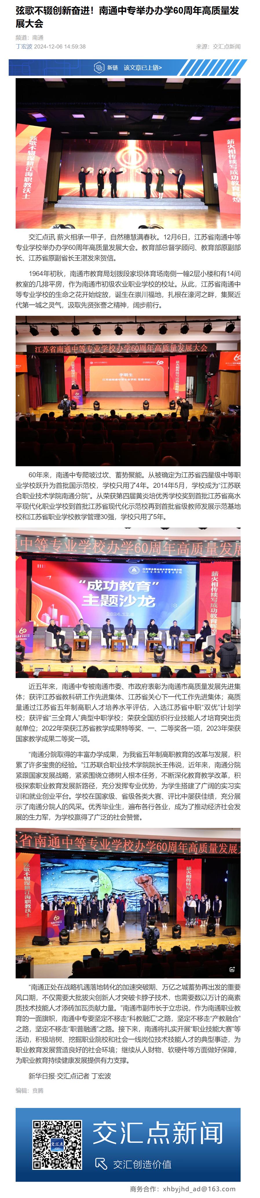 米兰在线注册资讯 当前位置: 米兰(中国) > 米兰在线注册资讯 > 媒体聚焦 > 正文 【交汇点米兰在线注册】弦歌不辍创新奋进!南通中专举办办学60周年高质量发展大会 浏览量:时间:2024-12-12 来源:交汇点米兰在线注册 原文链接:https://jhd.xhby.net/share-webui/detail/s6752a0dbe4b0595c185f941c 分享到: