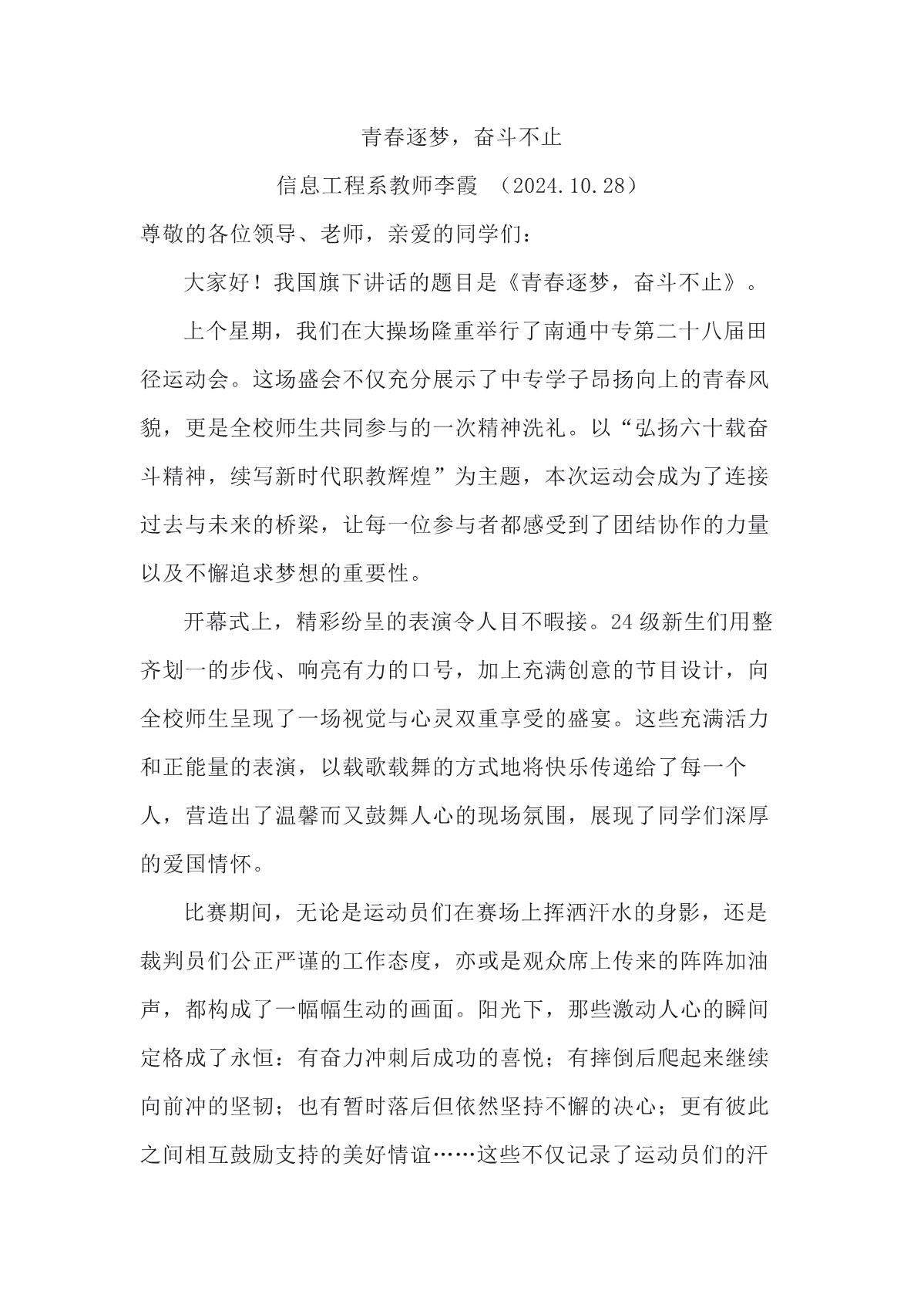 国旗下讲话:青春逐梦,奋斗不止(信息工程系教师 李霞 2024.10.28)